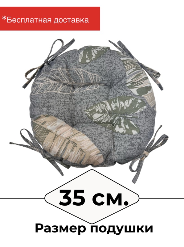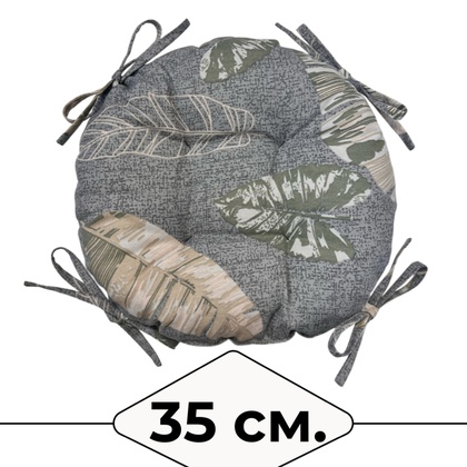 Подушка подойдет на сиденье любого стула: пластикового, деревянного и даже мягкого, а так же для диванов из палетт. Обивка сидушки на стул выполнена из плотной ткани - DUCK в состав которой входит 70% хлопка для гигроскопичности и 30% ПЭ поэтому сидушка прослужит долго и не потеряет форму. Наполнитель - синтепон. Диаметр подушки: 35x35см. У подушки на стул нет съемного чехла, но ее можно стирать в стиральной машине на деликатном режиме при 30 градусах без использования отбеливающих средств. В комплекте 2 подушки на стул с завязками и водоотталкивающей пропиткой.